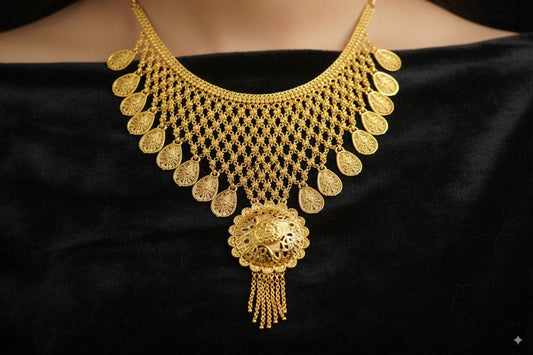 Save Up To 50% OFFTraditional Gold-Plated Bridal Necklace with Intricate Filigree Design