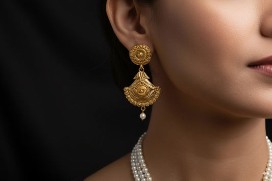 Regal Gold-Plated Pearl Layered Necklace Set with Earrings – Traditional Ethnic Jewelry